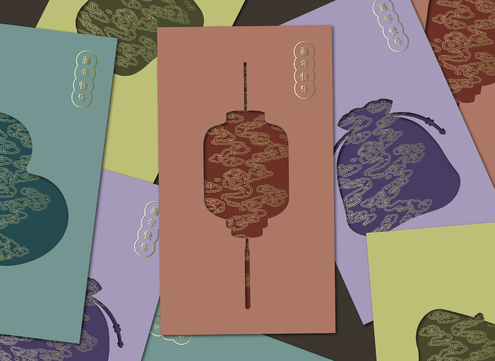 Premium Red Packet Collection Design for Kiatnakin Phatra Bank, featuring silhouettes of lucky/ auspicious objects in Chinese culture.