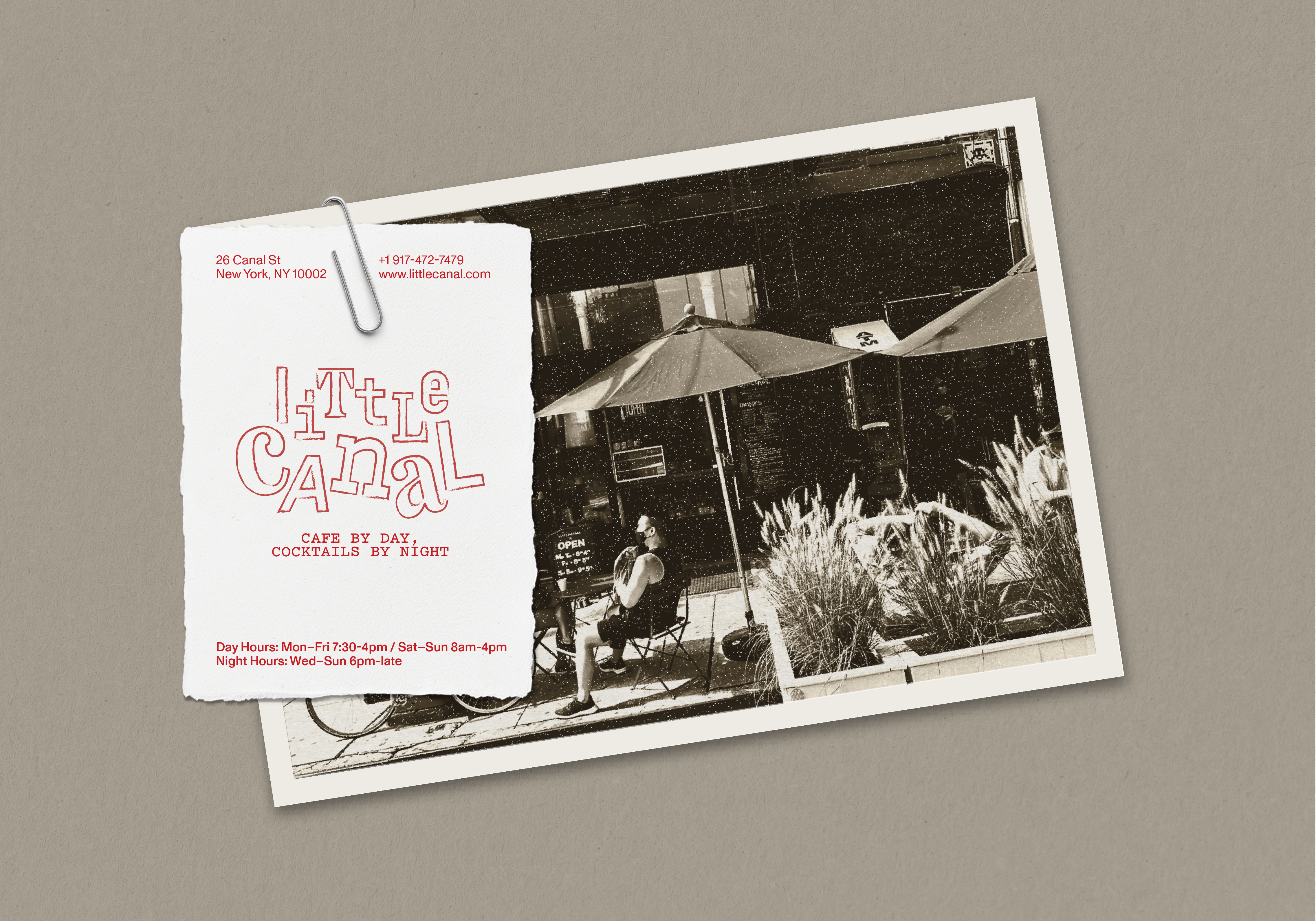 Rebrand of Little Canal, a neighborhood coffee shop and bar in New York City’s Chinatown. The new identity centers on community, celebrating the spirit of the neighborhood and the connections formed within it. Bold visual language and tactile design elements channel the raw, street-level energy of the area, creating a brand presence that feels authentic, welcoming, and distinctly tied to its surroundings.